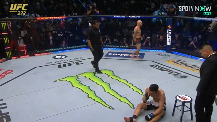 볼카노프스키에게 강한 펀치를 맞으면서 쓰러졌고, 이내 파운딩 세례를 받았다.