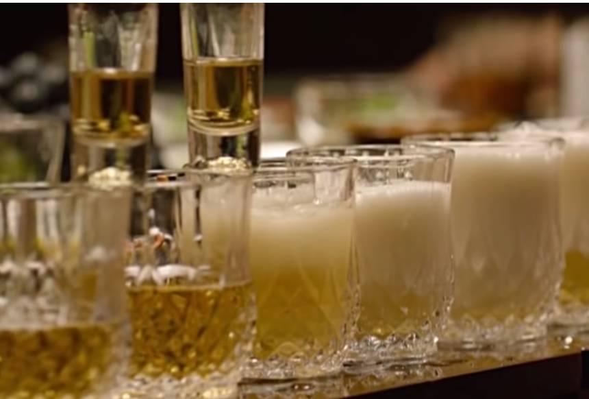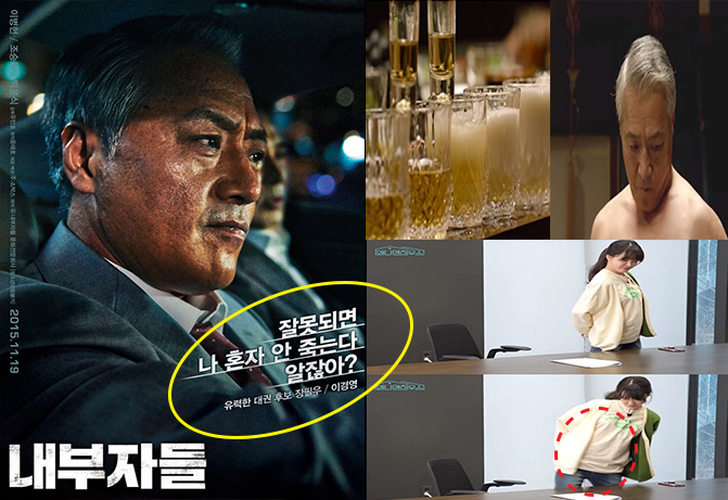 영화 내부자 장면 중 이경영이 성기로 폭탄주를 만드는 장면을 흉내낸 것