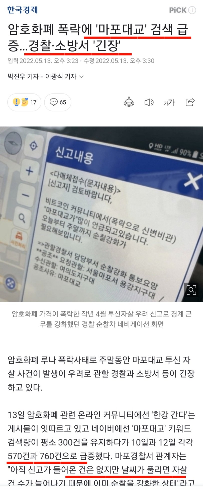 이 같은 암호화폐 폭락 소식과 루나코인 상장폐지 소식에