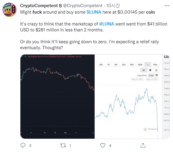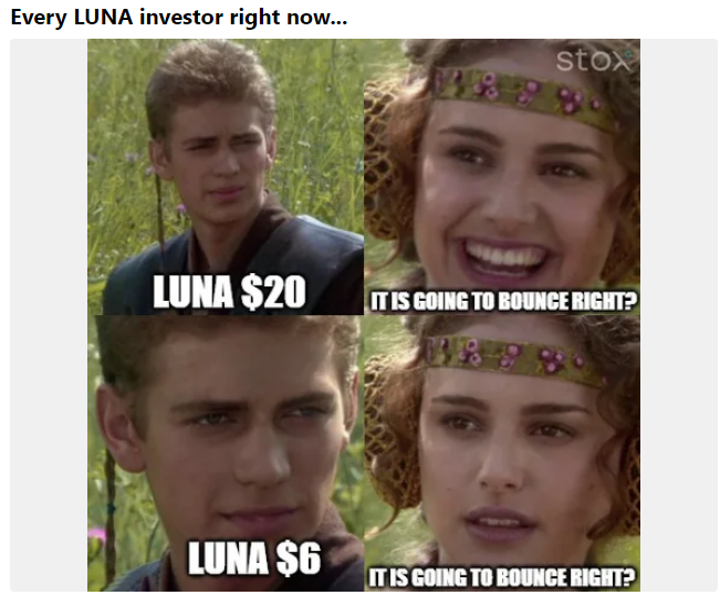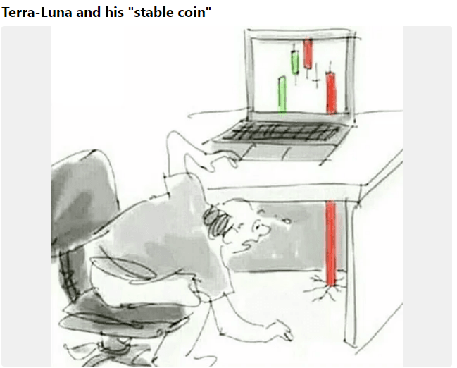 루나코인을 조롱하는 각 종 밈이 등장하며