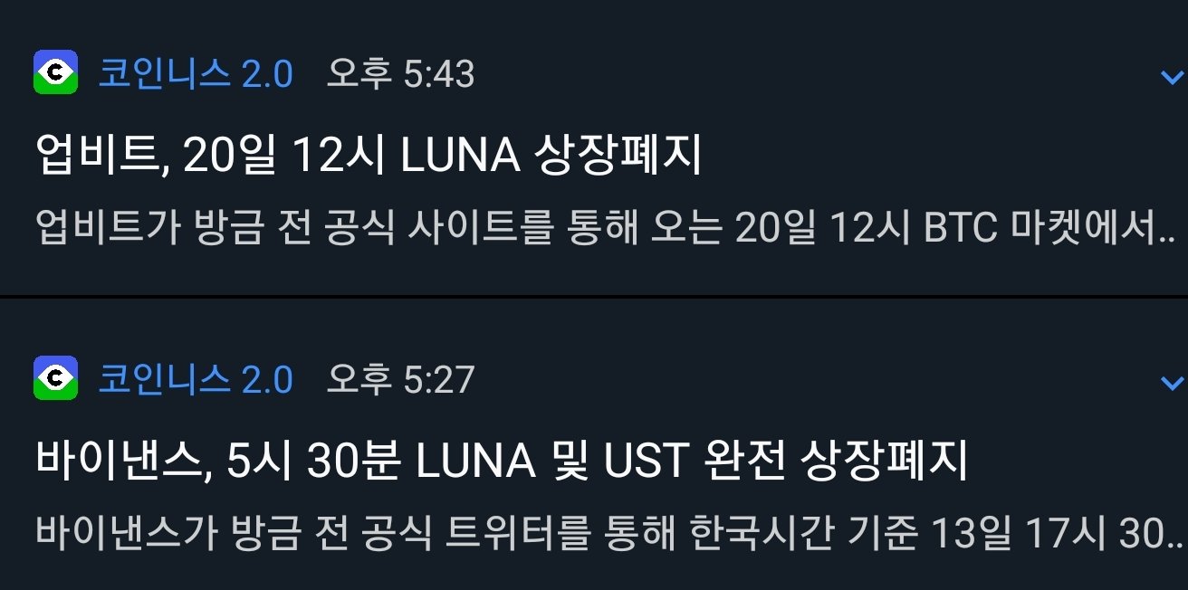 한편, 루나코인은 13일 상장폐지가 확정되었다.