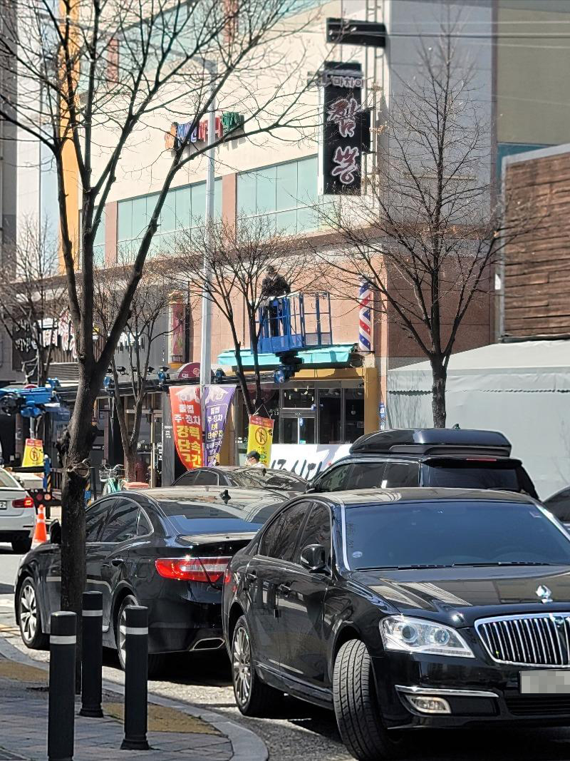 글쓴이 A씨 차량 앞에 렉스턴 차량이 한 식당 인근에 정차한다.
