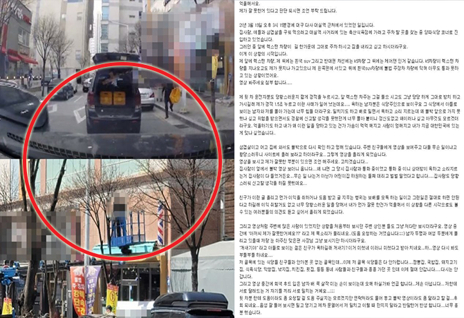 렉스턴 차주는 "짐 싣는 데 그렇게 갈 데가 없냐"며 항의했고