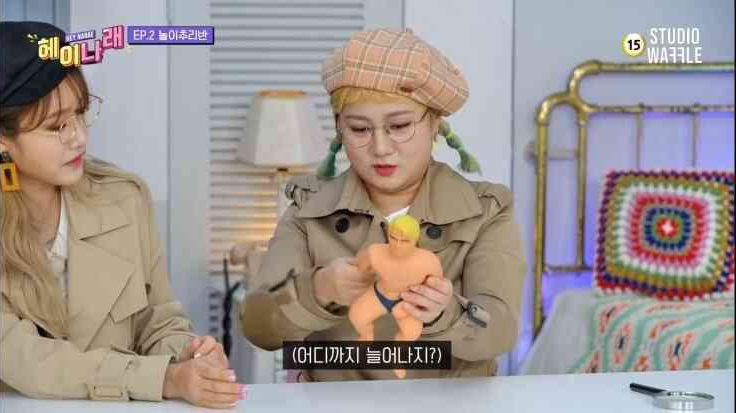 박나래는 속옷만 입은 인형을 두고 "요즘 애들 되바라졌다"라고 개그를 펼치며
