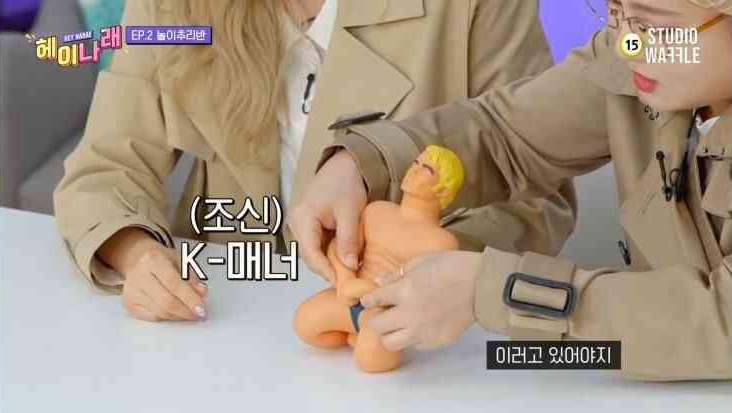 남성 인형을 구석구석 살핀 후 "너무 뒤가 T다", "너무 Y다",
