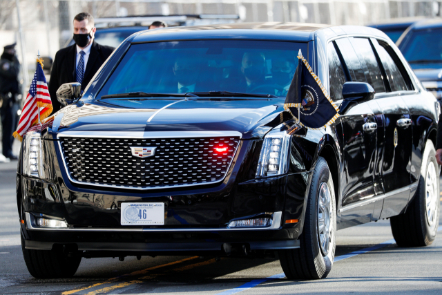베일에 쌓인 미 대통령 의전차량 케딜락은 VIP 경호의 상징이다.