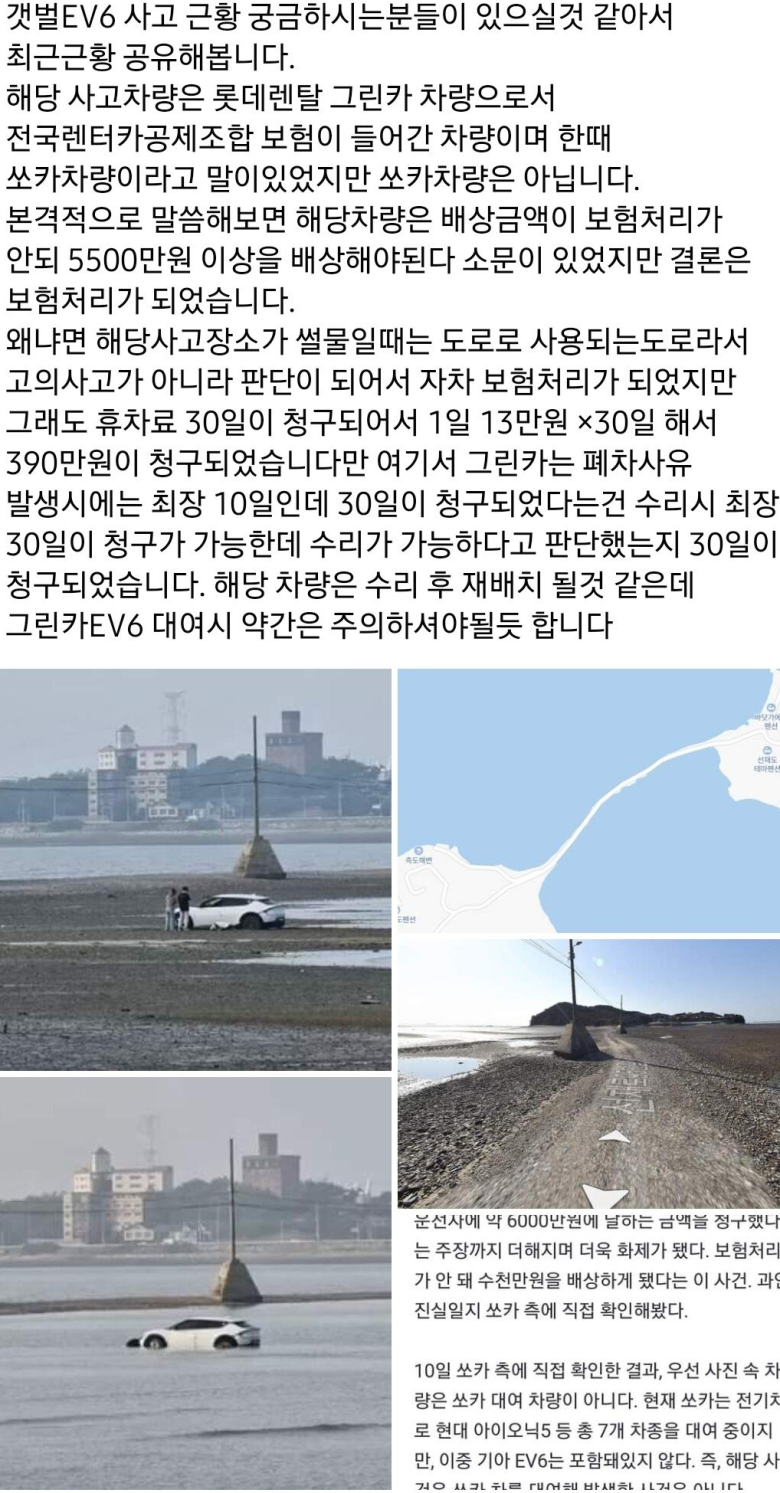 갯벌에 빠진 EV6차량 최신근황 결말은 아래와 같다.