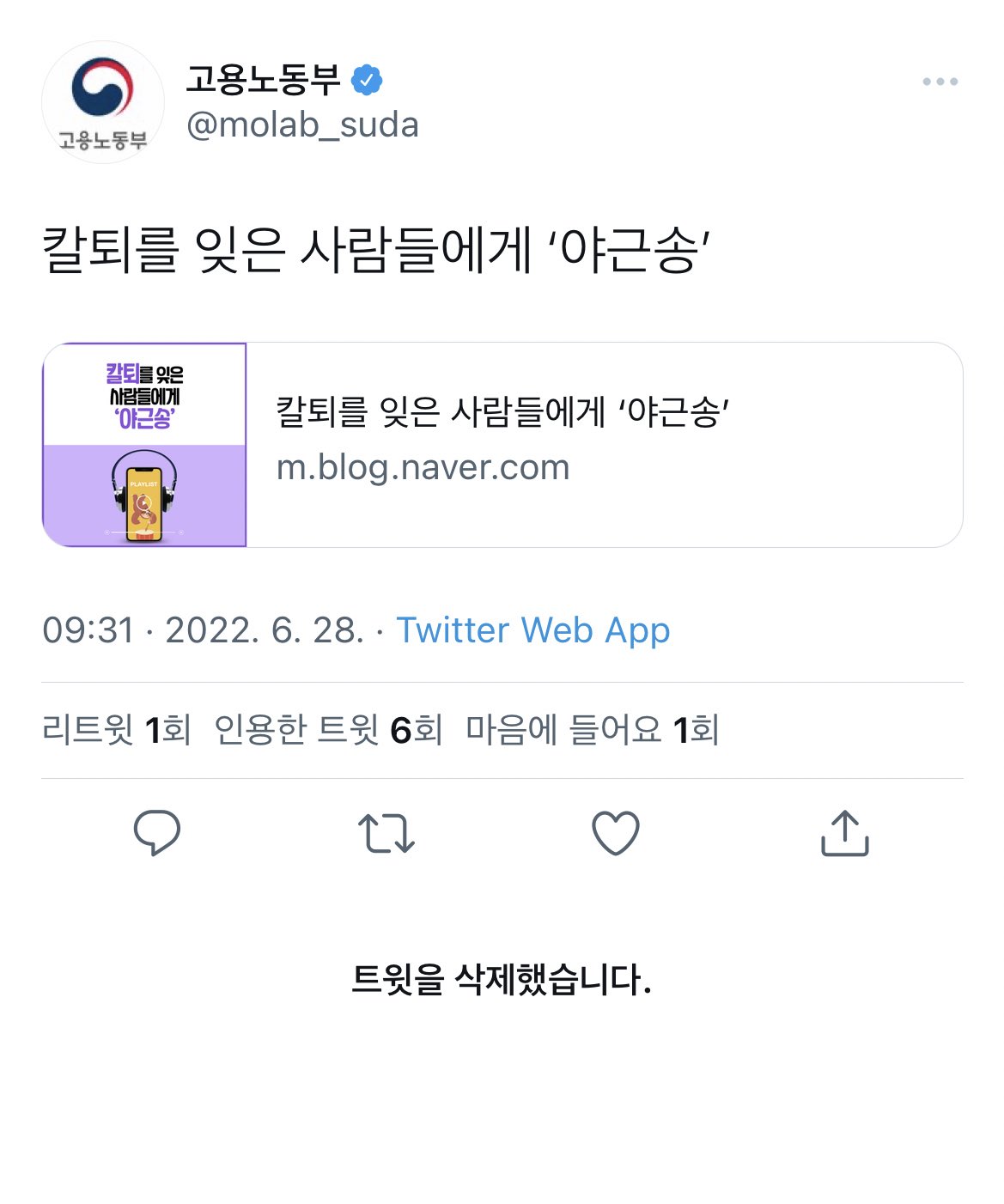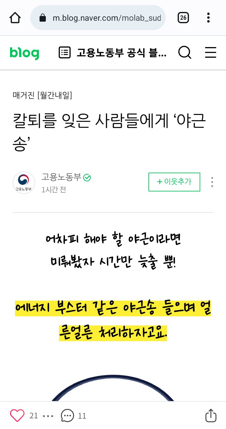 게재된 곳은 고용노동부 공식 트위터와 블로그 등이다.