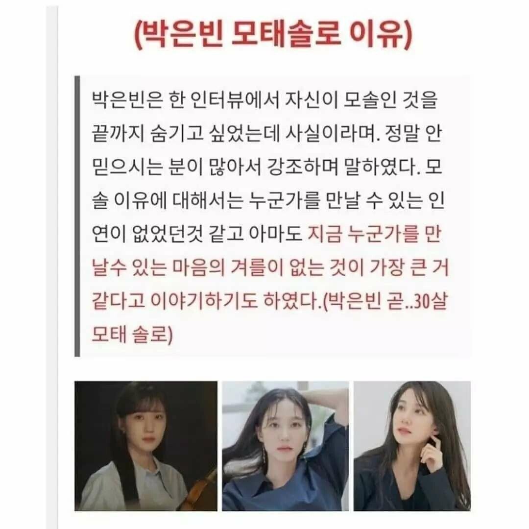 배우 박은빈은 한 잡지 인터뷰에서 자신이 모태솔로 인 것을 끝까지