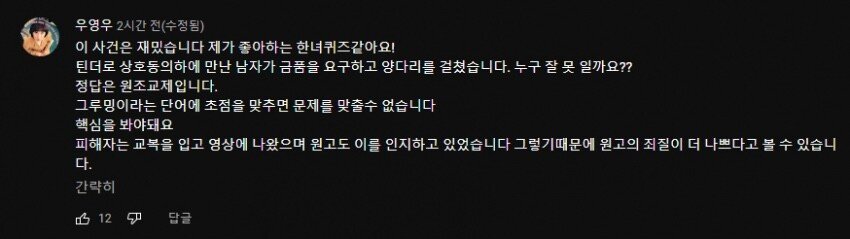그렇기 때문에 원고의 죄질이 더 나쁘다고 볼 수 있습니다. 라는 답글을 달았다.