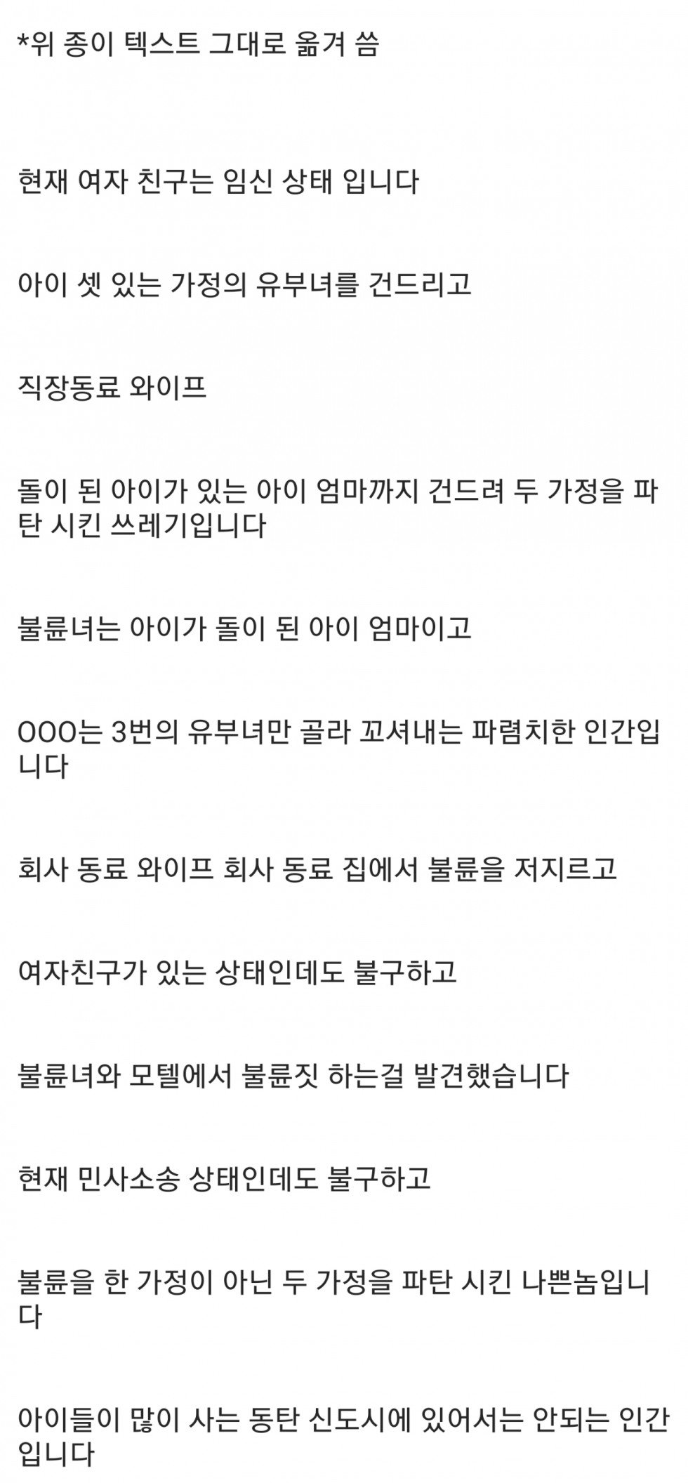돌이 된 아이가 있는 아이 엄마까지 건드려 두 가정을 파탄 시킨 쓰레기입니다