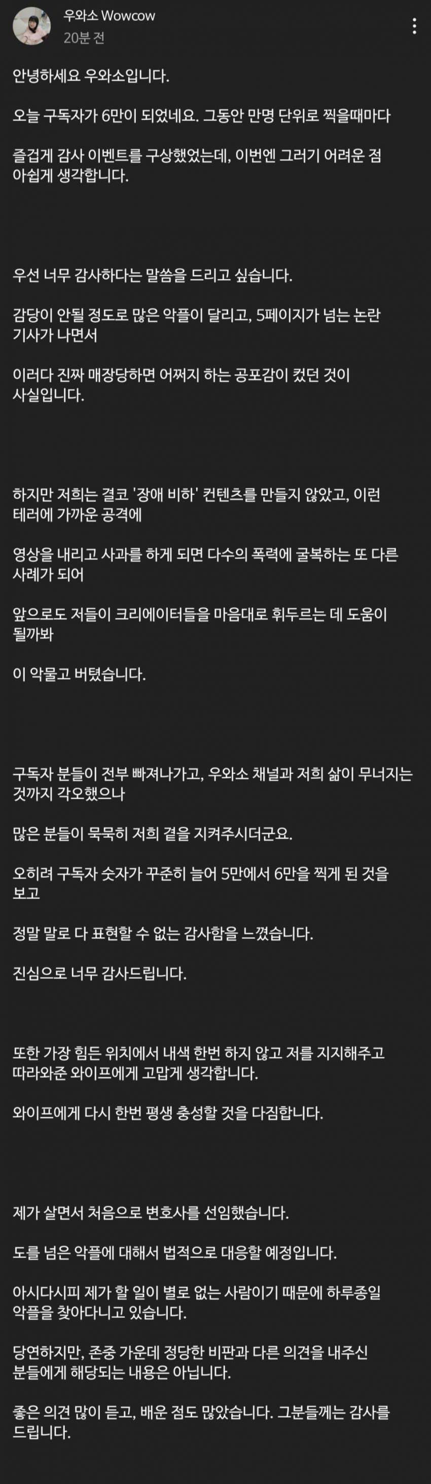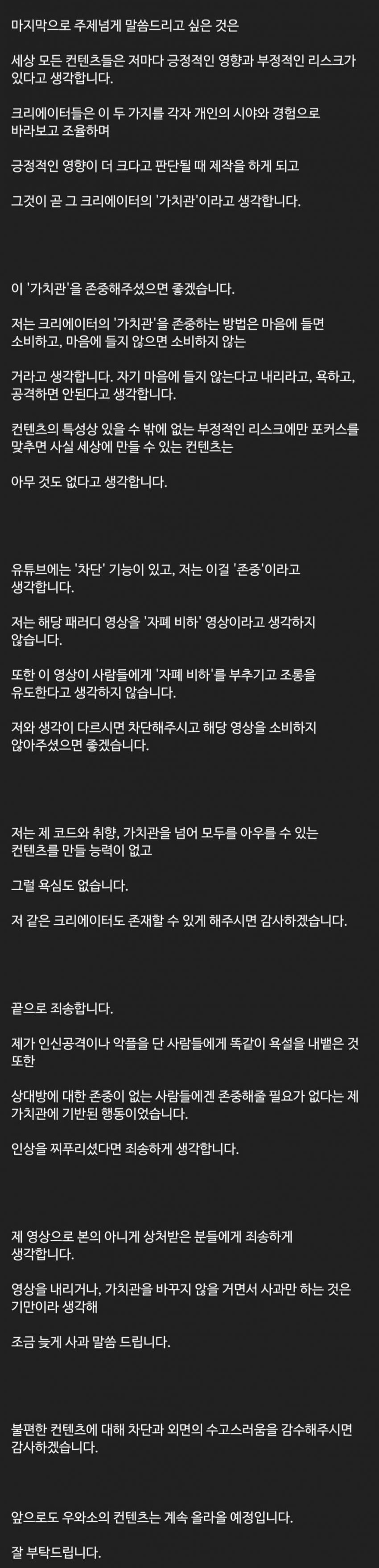 다음은 유튜버 우와소 입장전문