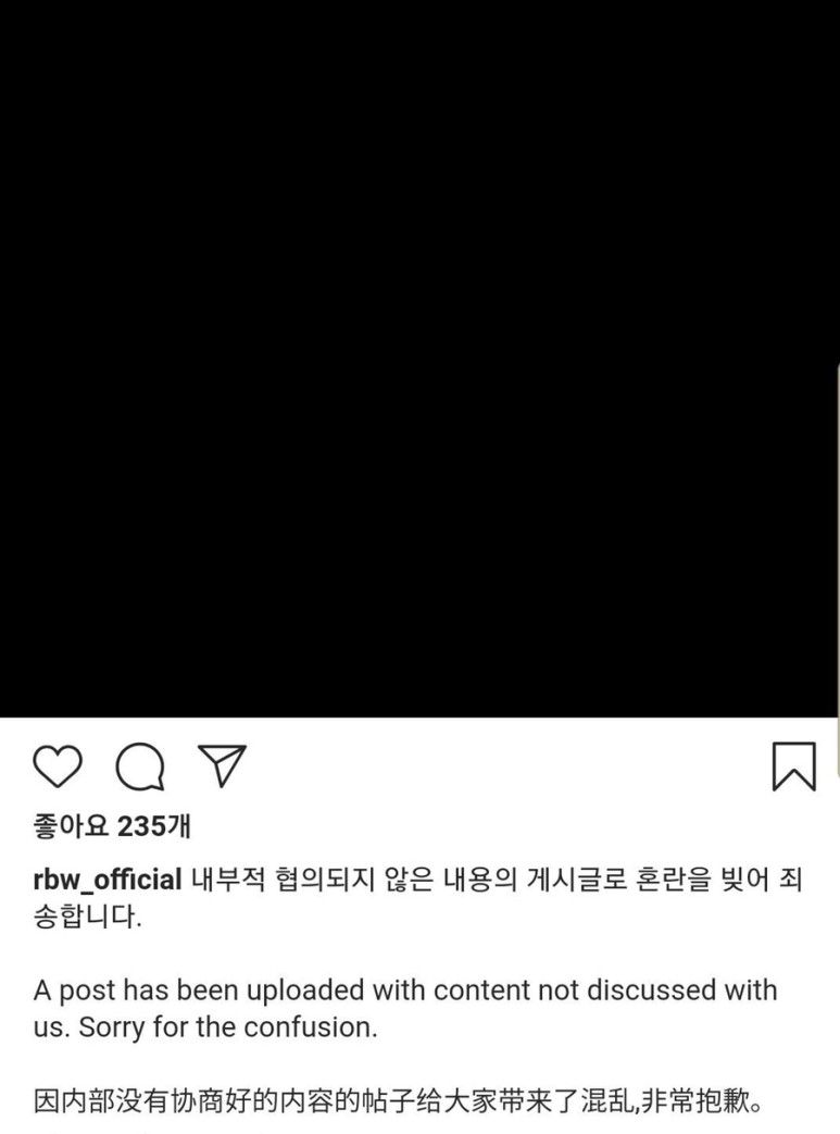 31일 오전 RBW 공식 인스타그램 및 웨이보 등