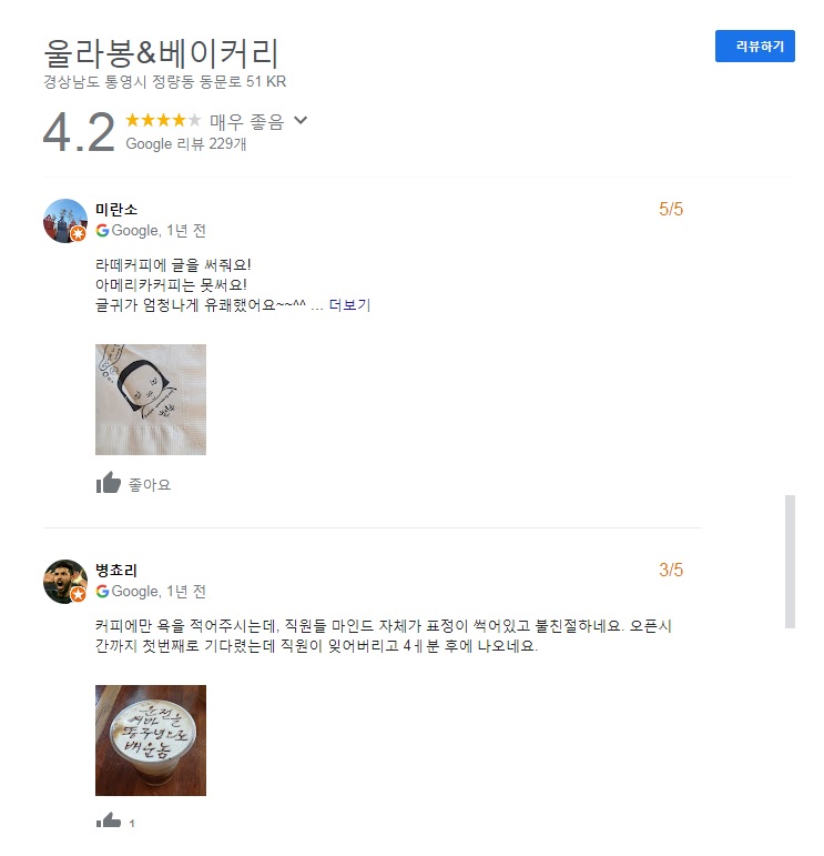 실제 통영 쌍욕 라떼를 방문한 누리꾼의 후기는