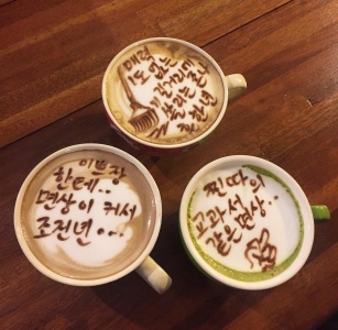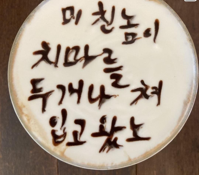 센스있는 카페아트의 문구와 짗굳은 장난의 욕설이라는 점에서 화제다.