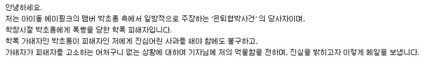 걸그룹 에이핑크의 멤버 박초롱이 학폭 논란에 휩싸인 가운데