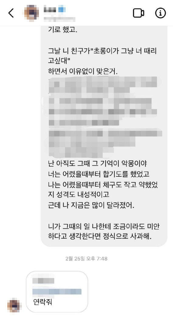 박초롱의 학폭의혹을 주장한 A씨는 학창시절 우연히 마주친