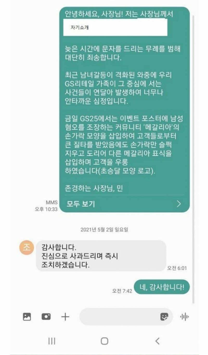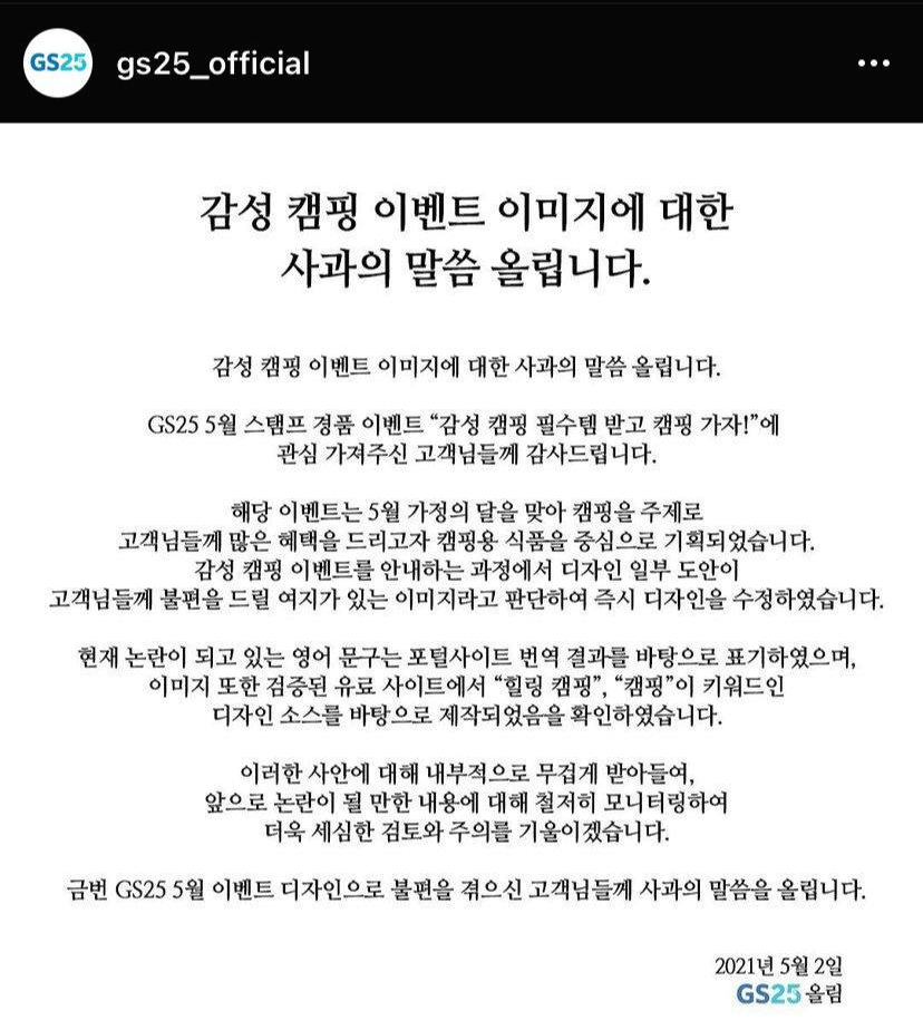 이후 공식 계정을 통한 GS25측은 재차 사과문을 전달하며