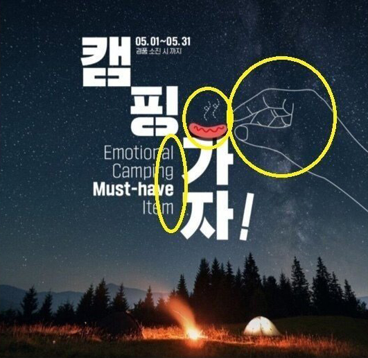 캠핑가자 라는 한 포스터에 홍보자료에 포함된 손 모양이