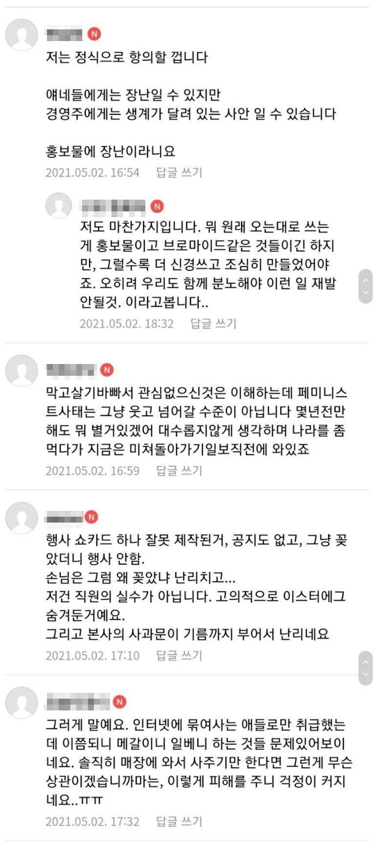 여러 제보가 잇따르며 불매운동까지 등장했다.