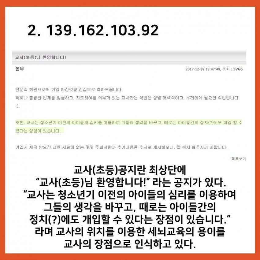 조직적으로 학생들을 세뇌하려 하고 있는 사건에 대해 수사, 처벌, 신상공개를 청원합니다 > 대