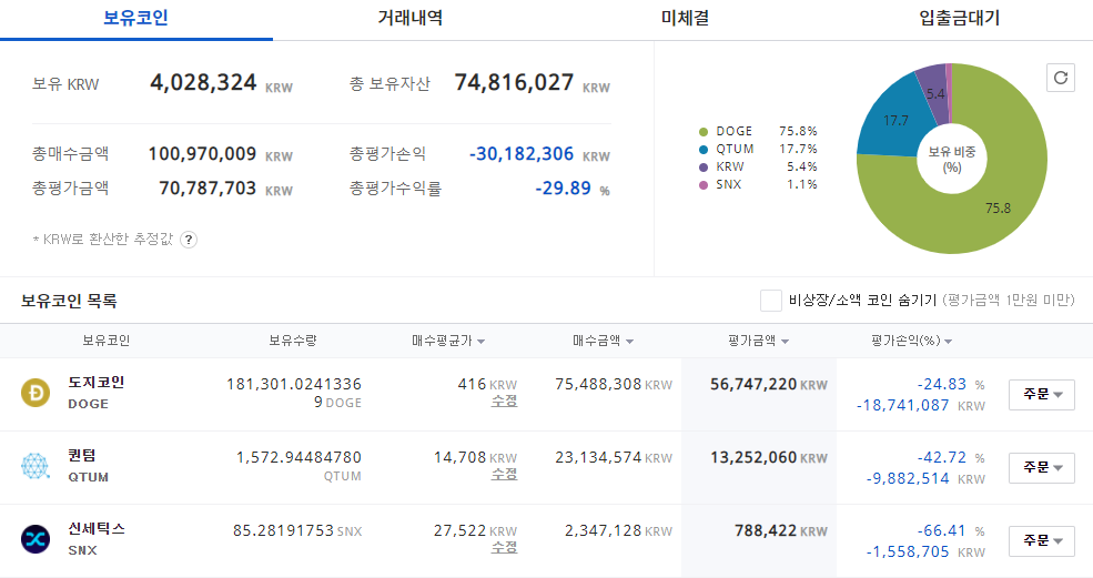 고점 대비 75% 폭락 악재를 맞이했다.