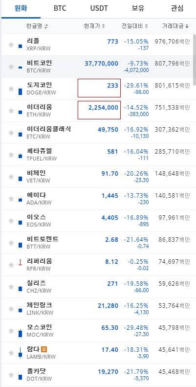 3만달러 붕괴를 앞두며 비트코인 중 이더리움, 도지코인
